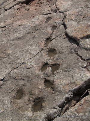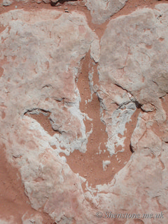 As well as the individual prints this is also a good location to look at some tracks such as the one in the picture below which streches for about 2 meters and has at least 9 prints in it. Through careful analysis scientists can determine the speed, direction and other behavioural aspects of the creatures that made this track. What they cannot do unless a dead creature was to be found at the end of the track (and even then it would be speculation) is to determine exactly what type of dinosaur made these tracks. This does not stop scientists "having a good guess" based on all of the available evidence. One of the best things about science is the ability for different opinions to be shared and evidence debated until there is a strong set of evidence and agreement that a theory is correct, or as near to that as can be agreed. New evidence can always be found and then the theories have to change